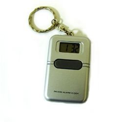 Small enough (2-1/4" x 1-1/2" x 1/2")to conveniently fit into a pocket or purse, yet large enough to keep you from misplacing your keys, this convenient clock/keychain has a surprisingly loud and clear voice. A built-in alarm (rooster) can be set to remind you of appointments. Replaceable batteries included that last for about one year. Spanish Language TAKES 2- AG13 BUTTON BATTERIES or LR 44 #272606